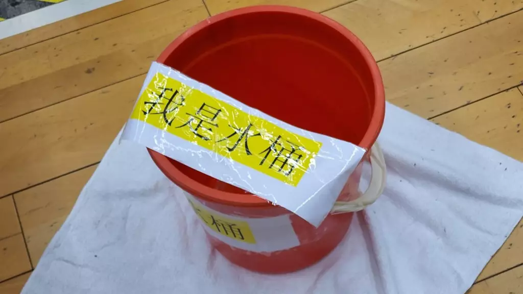 盧偉國在檢測中心內看到一個「耐人尋味」的水桶。盧偉國FB
