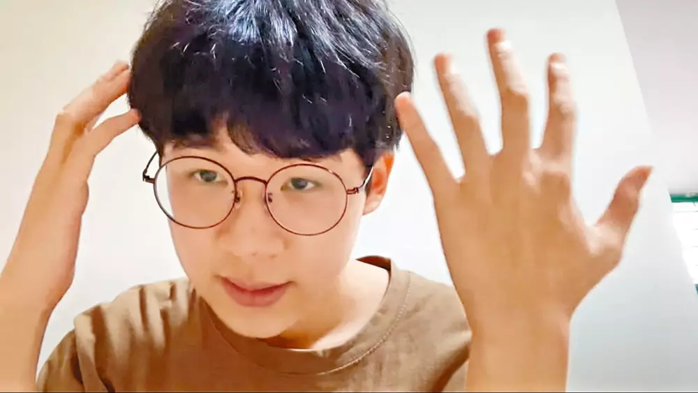 東華三院黃笏南中學中六生林澤駿,挑戰「髮禁」校規。