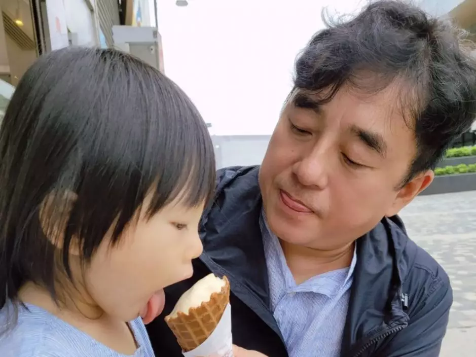 伸晒脷咁餵囡囡食雪糕。