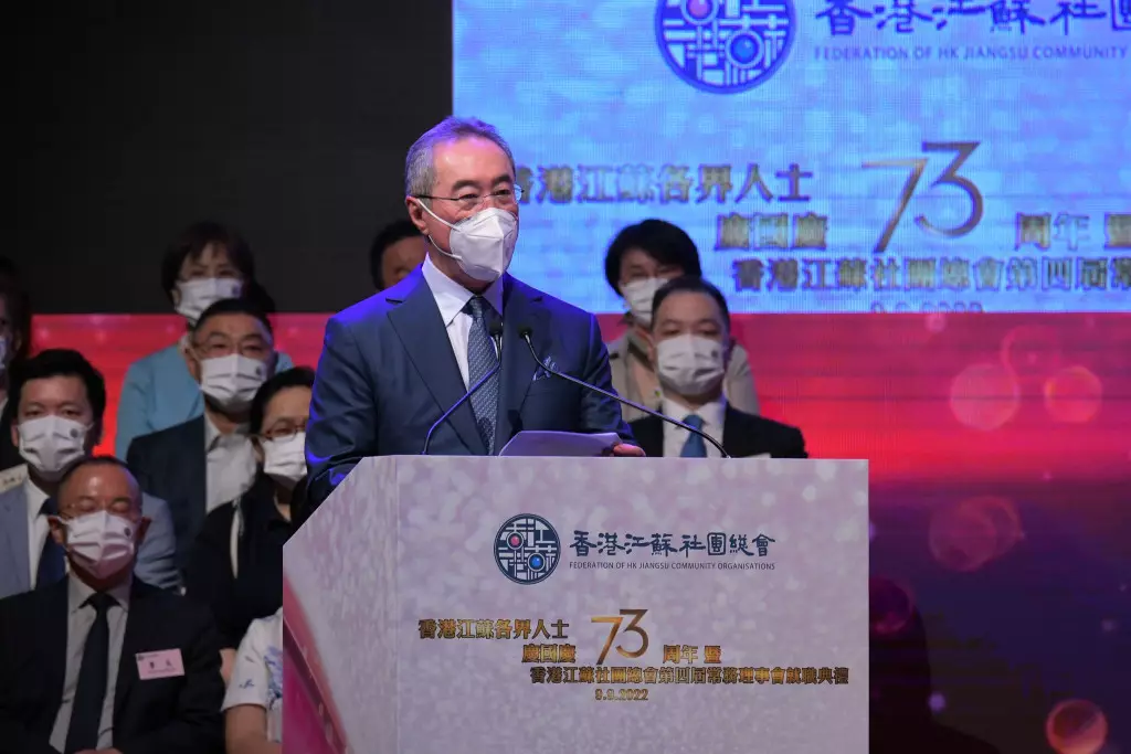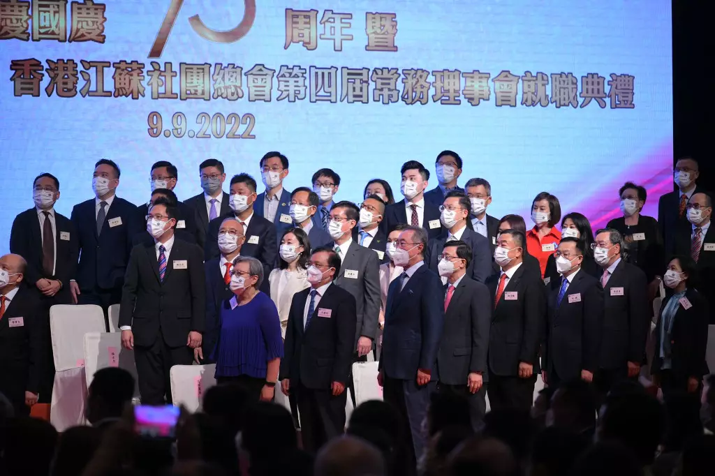 香港江蘇各界人士慶國慶七十三週年暨香港江蘇社團總會第四屆常務理事會就職典禮於9日晚在香港會議展覽中心舉行,現任會長姚茂龍接過會印正式當選香港江蘇社團總會第四屆會長。行政長官李家超以嘉賓身份出席致辭稱,「香港江蘇社團總會一直是建設香港的中堅力量,並祝願祖國在七十三週年華誕之際國家國富民強,蘇港共心共榮。」