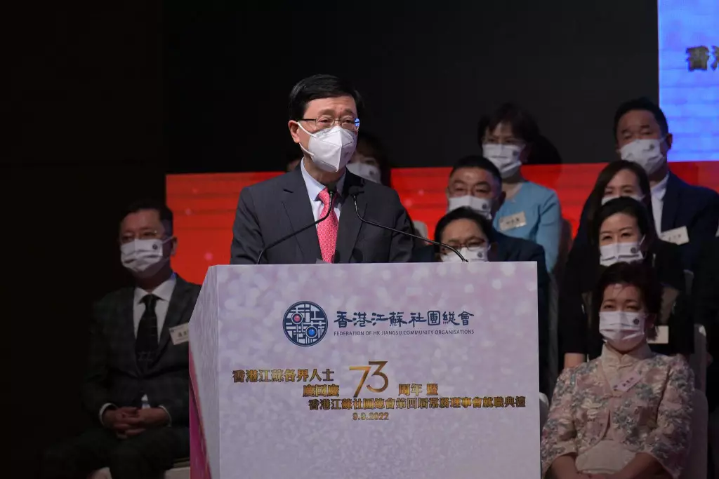 行政長官李家超對新上任的常務理事表示祝賀。他指出,「香港江蘇社團總會一直以來致力於促進蘇港兩地經貿文化交流,是建設香港的中堅力量。總會於年初第五波疫情爆發時,捐贈了超過四百五十萬元的抗疫物資,並積極動員義工,對此李家超表示感謝。最後,他祝願國家國富民強,蘇港兩地共心共榮。