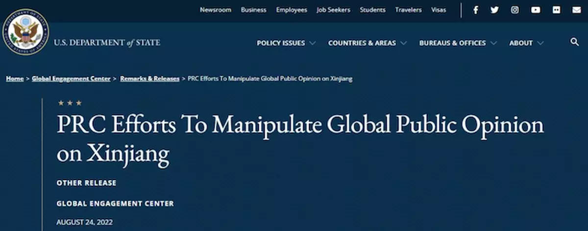 美國國務院同日發表一份指責中國操縱涉疆議題的報告。