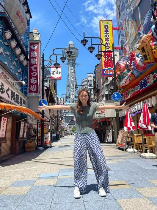 陳約臨還會帶大家去關西的大阪和京都。大阪的通天閣現在不只有觀景台看風景,最新玩法就是從一道螺旋狀溜滑梯設施從通天閣3樓中間展望台溜到地下1樓,據說從27公尺高的滑梯瞬間下來只需要約10秒時間,超級刺激,陳約臨連假睫毛都要飛出去。還有現在最流行的露營,大阪現在有了第一個球狀帳篷露營區,重點是離市區半小時車程就可以到這個坐擁大阪灣無敵美景的地方Glamping.
