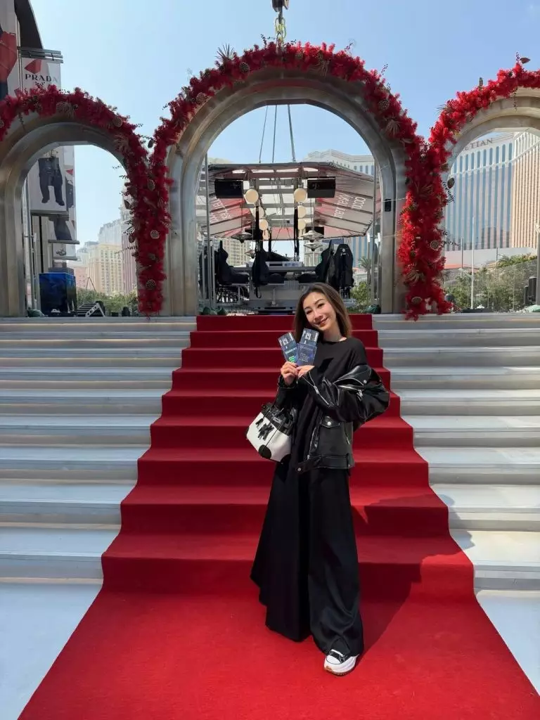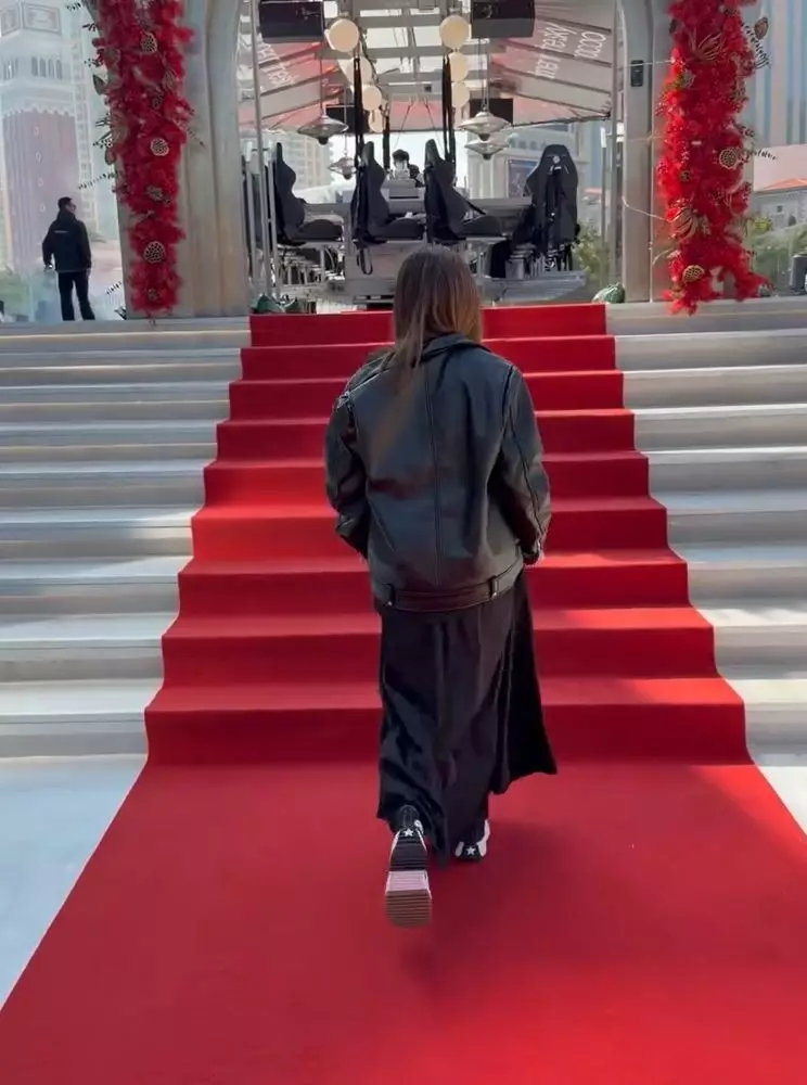 Angela在相中穿著一身紅色套裝到朋友的婚宴,大晒一雙長腿,但疑因她穿上高跟鞋關係令她雙腿極度纖細,甚至有點過瘦,而她的上半身雖然穿著外套,但仍可看到她比以前瘦削不少。