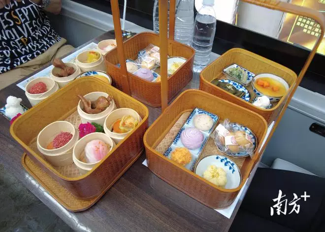廣州巴士集團「移動餐廳」項目工作人員黃志梅表示:「巴士上供應的每一件茶點都來源於逾20年的二沙島老店陶苑酒家的獨家出品,全套15件餐點能滿足各類人群的口味和需求。」