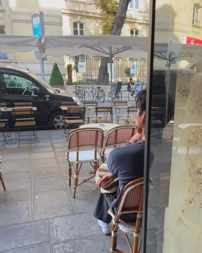 有網友在巴黎的街角咖啡店野生捕獲到申敏兒和金宇彬(網上圖片)