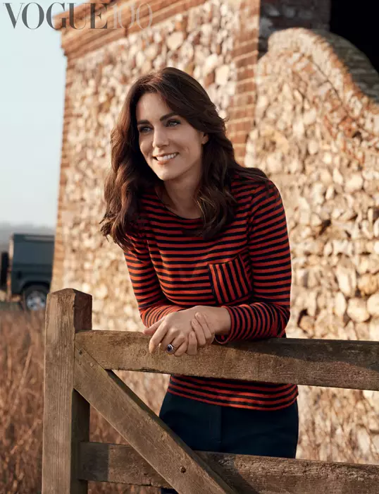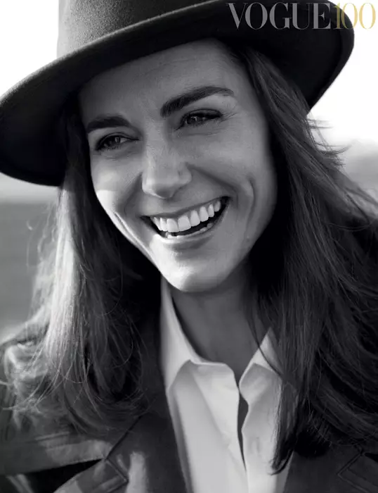 照片由著名攝影師奧林斯(Josh Olins)攝刀,一月在諾福克郡郊外拍攝。當日凱特戴上墨綠色帽子,穿上白色襯衣和棕色外套,展現燦爛笑容,其中兩張照片本月會在倫敦國家肖像館展出,紀念《Vogue》出版一百周年。