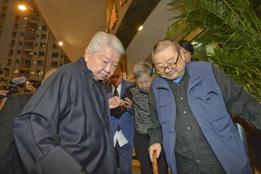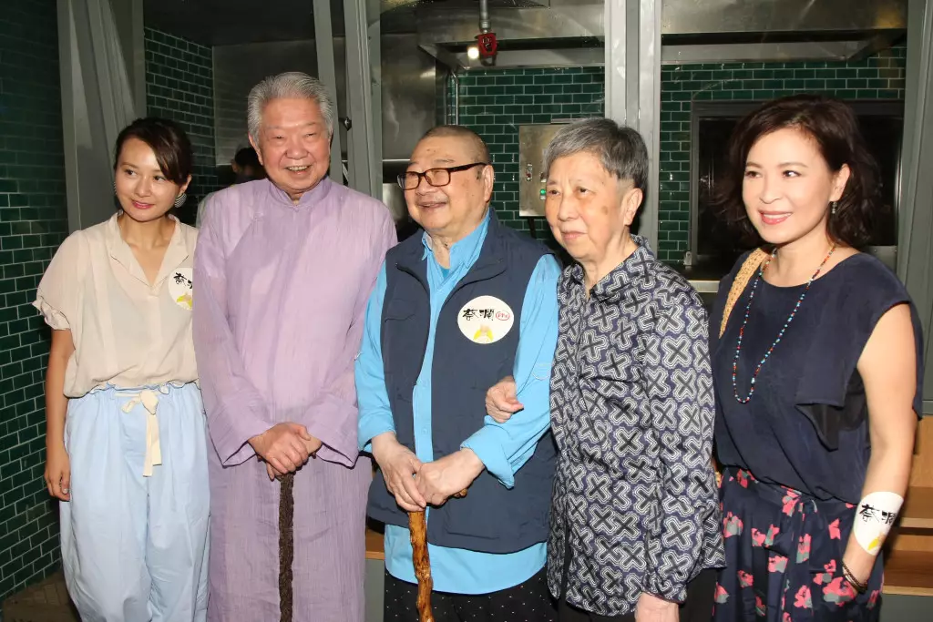 蔡瀾(左二)於2018年開餐廳,黃霑的女兒黃宇詩(左一)、倪匡夫婦及蘇玉華(右一)到賀。