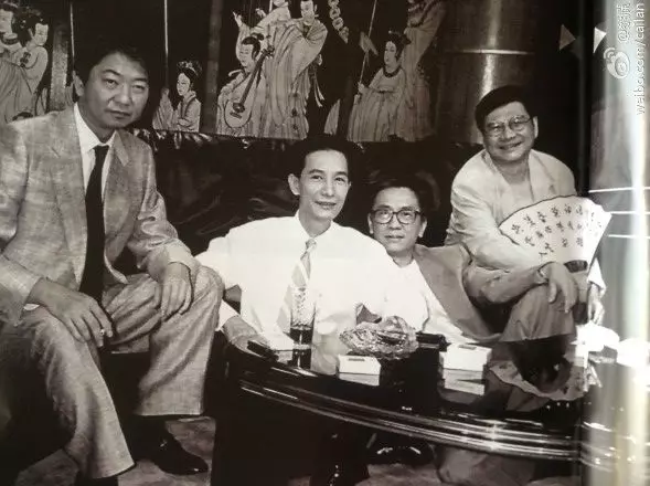 蔡瀾在倪匡(右一)78歲生日,上載與劉培基(左二)及已故的黃霑陳年黑白舊照祝賀。