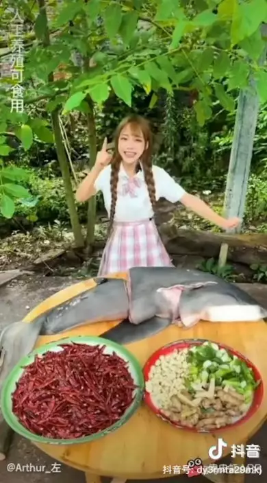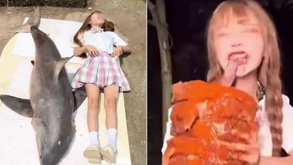 網紅烹煮瀕危鯊魚食用,引起軒然大波。