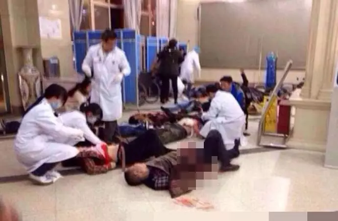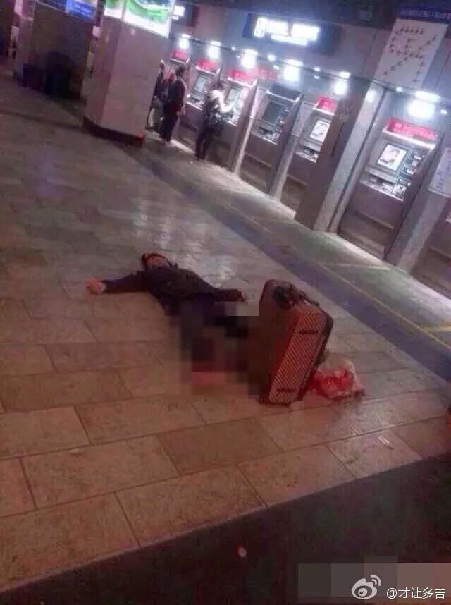 網上圖片顯示,現場多人倒地,滿地鮮血,場面血腥。部分人旁邊還有行李箱,相信是火車站旅客。大批特警荷槍實彈在場戒備,氣氛緊張。另有相片顯示,在醫院內,近十具屍體放在地上,場面恐怖。