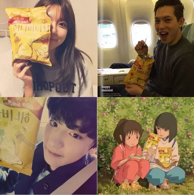 2014年8月Haitai出品的蜂蜜薯片,借助Instagram之風,成為了韓國全國上下都想擁有的熱爆單品,追捧熱度絕對不低於如今劉大尉腳上的Golden Goose白球鞋。也因此這款honey butter口味的薯片成為長期在各大超市便利店斷貨的商品。