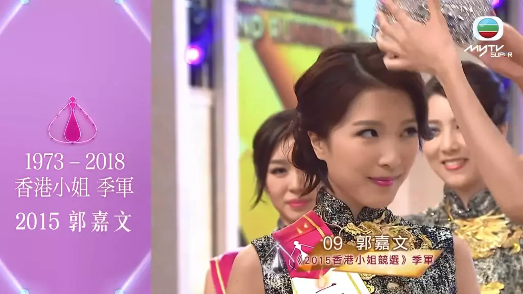 2015年港姐季軍郭嘉文,當年在家人和朋友支持下參選,結果以257,064觀眾選票積分勇奪季軍,簽約TVB後獲得主持及拍攝劇集的機會。