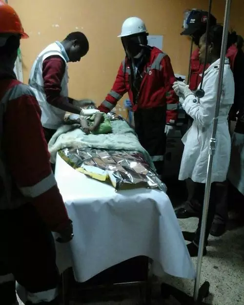 當地紅十字會表示,女嬰當地星期二凌晨四時被發現藏身在一個水桶內以毛毯包裹著,雖然出現脫水現象,身體無明顯受傷,已送往甘耶達國立醫院(Kenyatta National Hospital)。外電報道,醫院人員估計女嬰約只有七個月大,不過其他報道指女嬰約一歲半。當地警方形容事件是奇蹟,救援行動仍在繼續。警方又指,今日在現場尋獲兩具遺體,令慘劇死亡人數上升為二十三人;而紅十字會就表示,目前仍有九十三人失蹤。