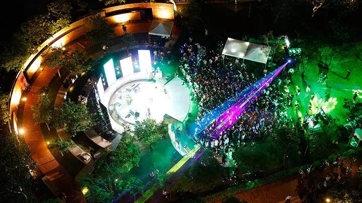 香港大學23日黃昏於百周年花園舉行「111uminate」DJ音樂派對,為慶祝港大111周年設計的藝術裝置同時於即日晚亮燈。