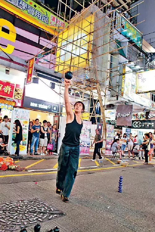 旺角行人專區被視為街頭藝人大笪地,有外國人即興表演拋球。