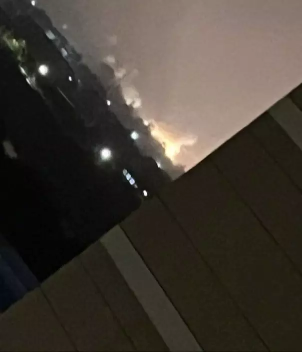 社交平台有網民在江陵市拍到導彈陸地上降落及爆炸。網圖