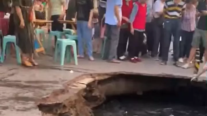 今次事故在周日(3日)發生,重慶綦江橋步行街一段路面突然塌陷,由於事出突然,多名路過的行人因為來不及反應直接摔入洞;而該處路面底下又剛好是化糞池,眾人當場墮進又黑又臭的池內。多位被途人見狀合力將墮池的民眾拉起,只見各人全身都已被污水染成黑色,還飄出刺鼻的臭味,途人紛紛用掩住口鼻,狀甚狼狽。