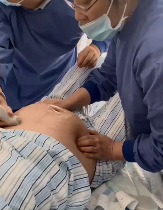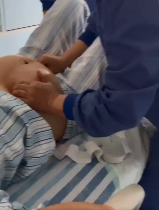 幸好孕媽媽身體狀態良好,沒有其他的併發症,產科主任醫師鄭嵐琳在術前給孕媽媽又做了次檢查,發現胎兒現在的臍帶繞頸1周,臍帶還比較鬆,在確定了臍帶轉的方向和用B超下定位後,鄭醫師一手捏著孕婦肚皮以確認胎兒位置,一手用猶如推拿的手法成功將胎兒翻轉,整個調整手法僅花了1分鐘!