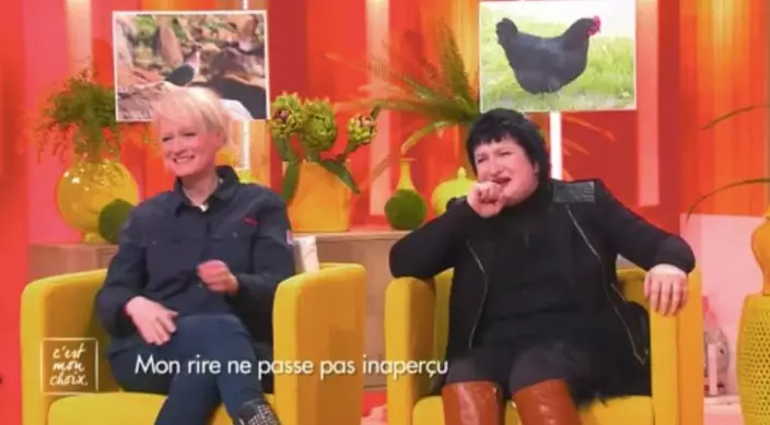 法國綜藝節目《這是我的選擇》(C'est mon choix)其中一集曾邀請了幾位擁有特殊笑聲的來賓,節目組在每位來賓身後都放置了一張用來形容他們笑聲的圖片,有人是豬、有人是雞、有人是羊、有人是喇叭、有人是海鷗,各個都不一樣。