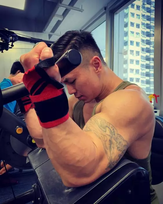 今年38歲的鄭仲軒,在十多歲時拍攝社署廣告後,就鮮有再在幕前出現。2017年Eric拍攝藥物廣告,重演「打波先嚟落雨」的片段,當時已透露自己已經成為健美先生、健身教練,片中見到五年前的Eric已經變得非常健碩。近日他流出的新相,見到他的身形更為誇張,不論二頭肌、背肌、胸肌、一排的朱古力腹肌,到人魚線及腿部,全都練到青筋盡現,似足筋肉人。
