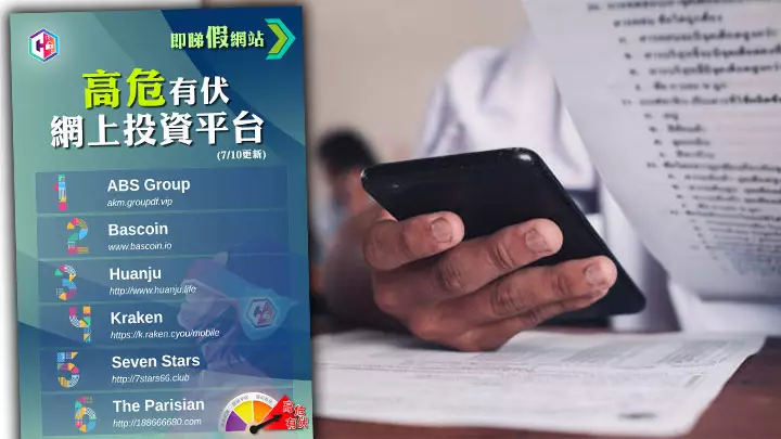 警方公有最近一周6個假投資App或平台䁥稱,呼籲市民應提高警覺,以免墮入騙局。警方又教路,市民投資過數或支付本金前,可用守網者網站的「防騙視伏器」,輸入投資平台帳戶的名稱或網址、收款的銀行戶口號碼、轉數快戶口、對方電話號碼、電郵地址等,一按便會顯示結果,如出現紅色「高危有伏」、橙色「疑似有伏」或黃色「可能有伏」,便為假投資App或平台。不過,警方強調縱使結果顯示紫色「未有詐騙舉報」,只代表尚未有受害人向警方報案,並不等於完全安全,仍要評估風險。