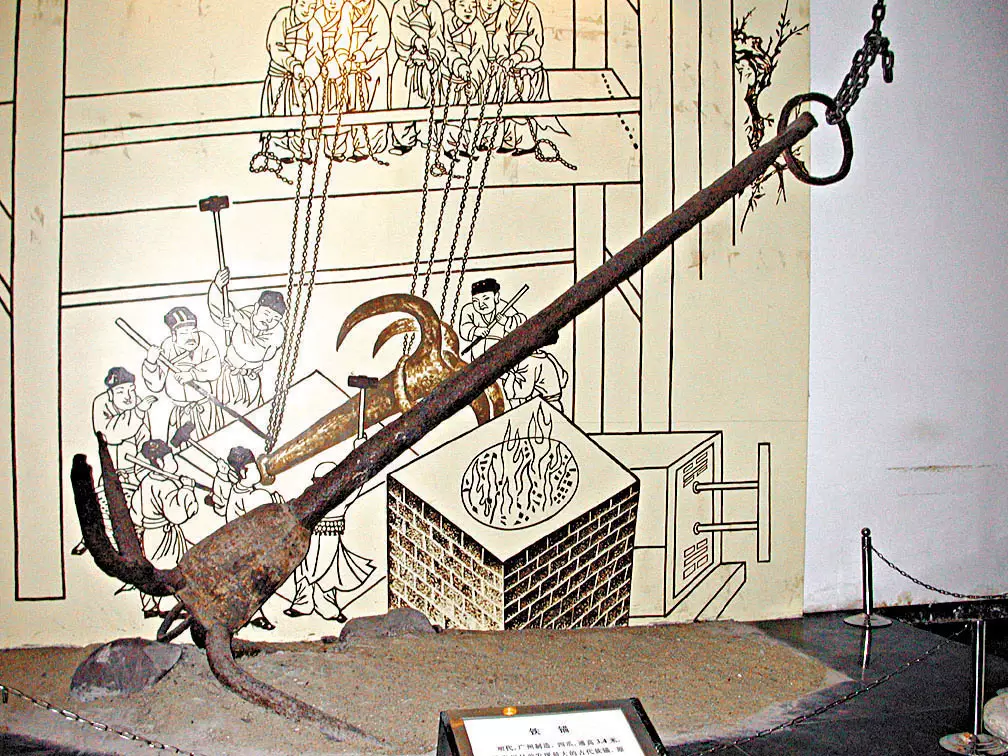 這是廣州目前發現最大的古代鐵錨,高3.4米,於明代在廣州製造。(資料圖片)