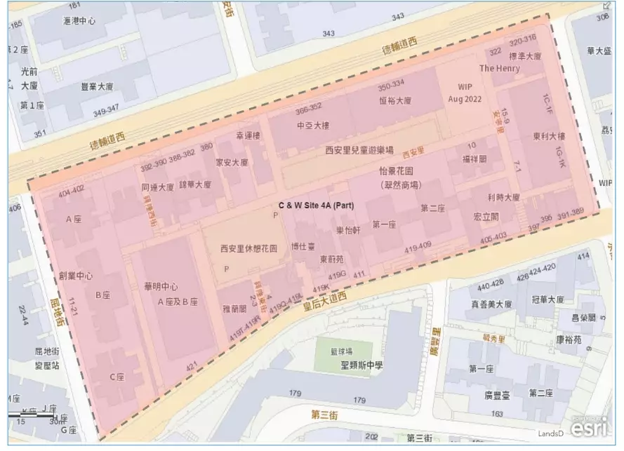 中西區 — 屈地街與水街附近一帶住宅(見下圖)