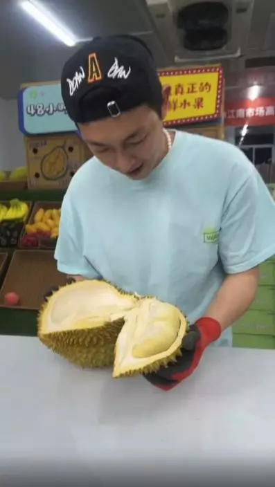 梁競徽今年6月試過直播賣榴槤,期間更徒手剝開榴槤。