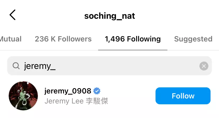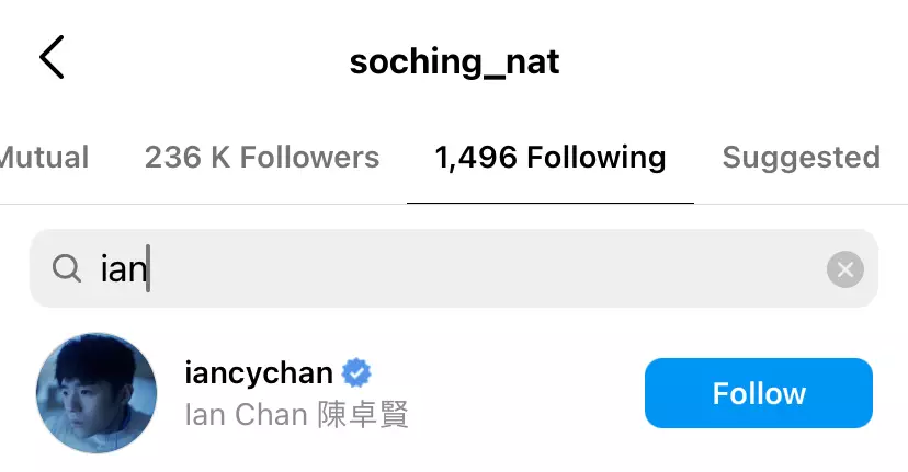 有網民發現So Ching取消關注MIRROR成員的IG帳號,包括隊長lokman、Anson Lo、Edan等。