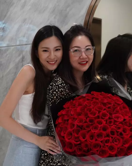 陳懿德企喺前排加上鮮紅色連身裙,非常搶眼。