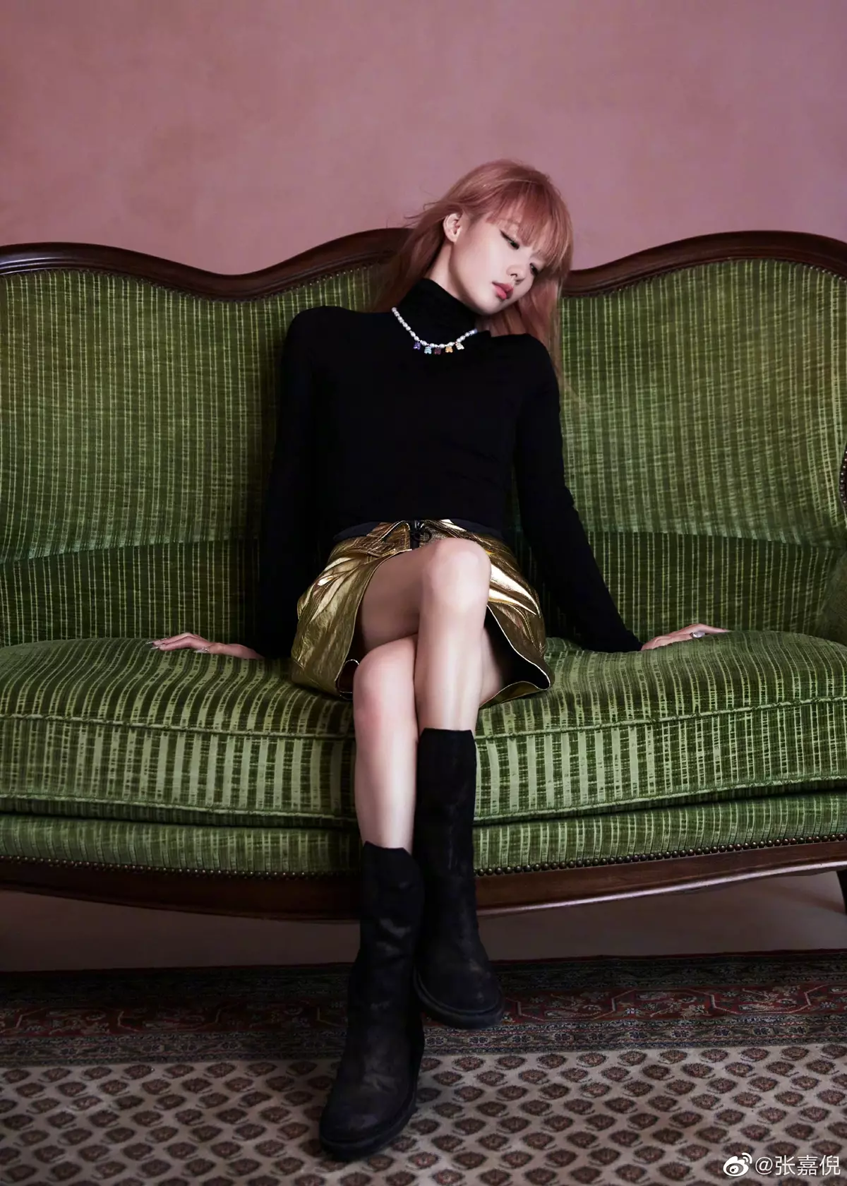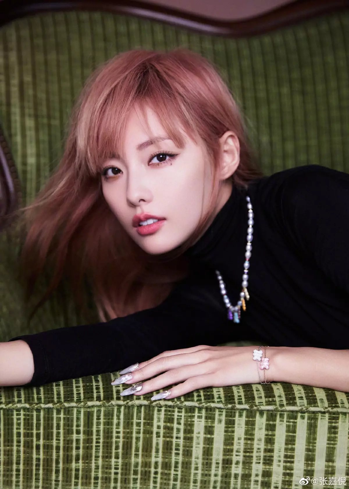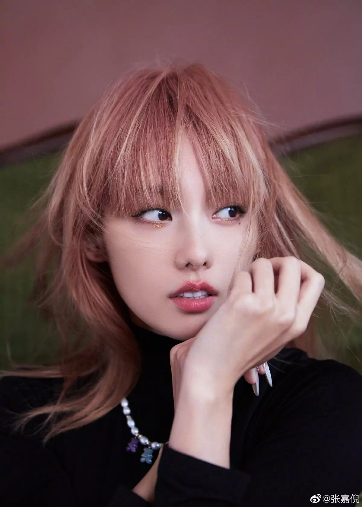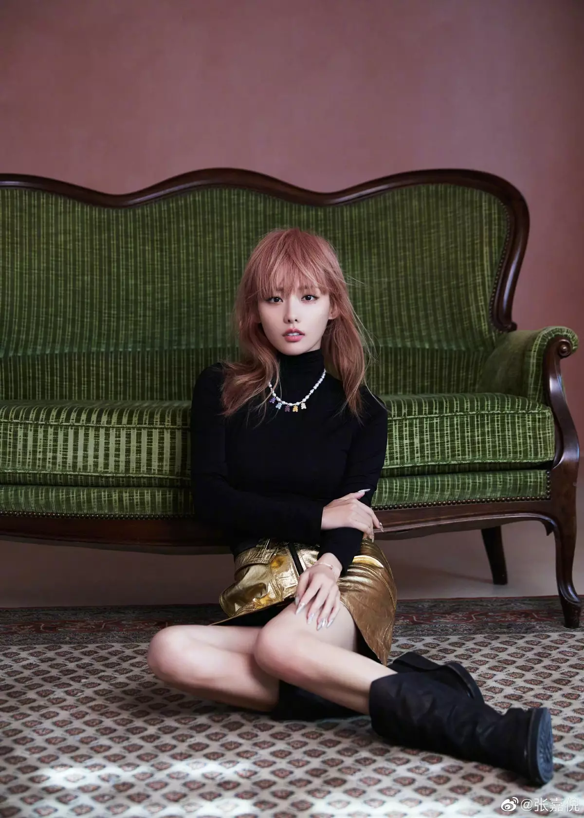 10月14日,張嘉倪在社交平台晒出一批靚相,見她染了一頭粉紅色頭髮,穿上短裙大晒長腿。相片中,張嘉倪慵懶地側靠在沙發上,勾人心弦的魅惑眼神加上誘人姿態,盡顯性感嫵媚。