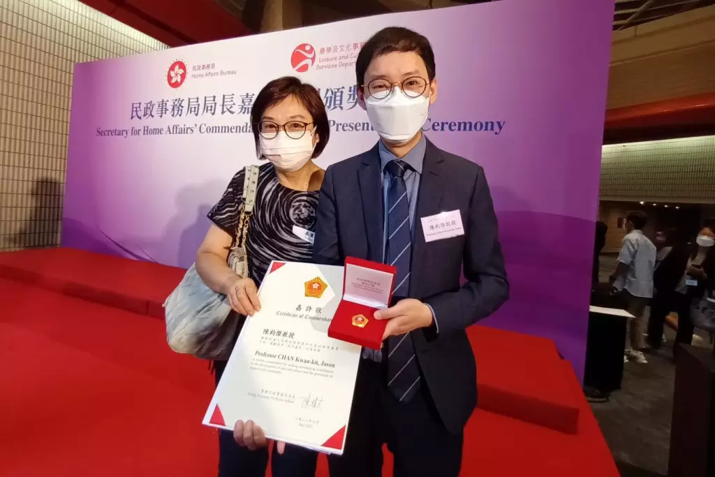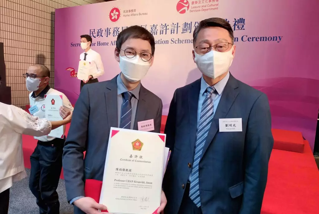 「火博士」6月底時才剛獲民政事務局及康文署嘉許,表揚他在科學普及方面的工作,他更於社交平台上載出席頒獎禮的照片。