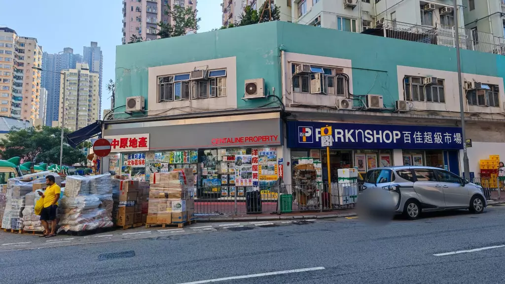 元朗鳳翔路金馬大廈的24小時百佳超市,門外擺放幾板貨物待處理。