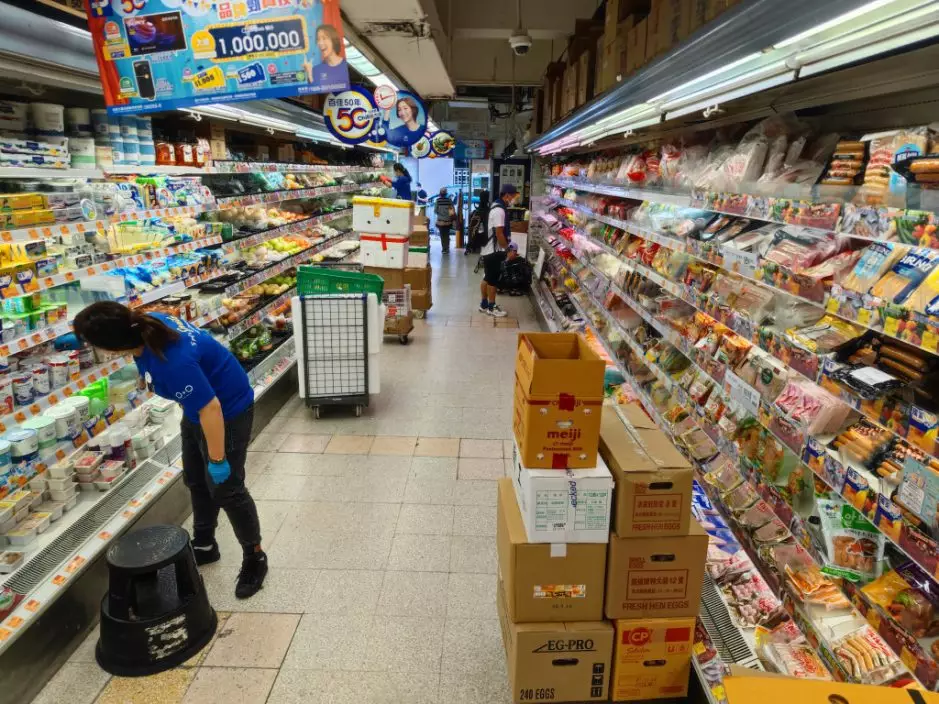 記者在超市拍得的通道與網上瘋傳冧貨壓中女顧客的通道如出一轍。