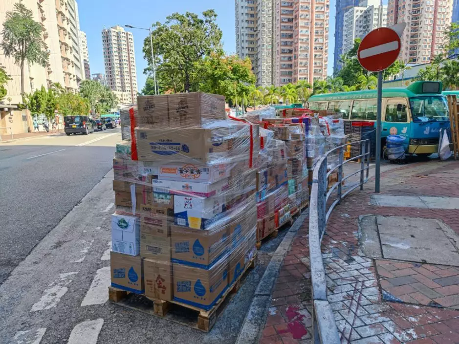 走廊放有不少膠箱及紙皮盒,令通道變窄。