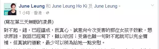 我現在鄭重向這個女孩子再三道歉。我知道妳已經受傷,被人欺騙、拋棄在先,被我公開傷害在後。我個人再三道歉可能不足以彌補。身為成年人,要站出來,割蓆不能了事,錯要承認,遲認比一早認差,但死口不認比不認更差十倍。