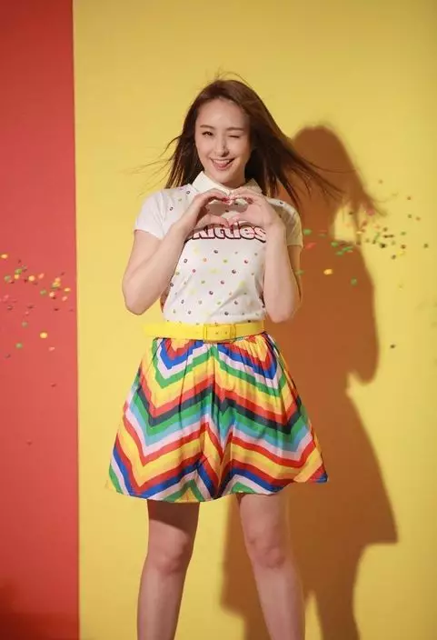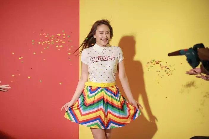 她表示在加拿大讀書時已很喜愛食彩虹糖,故當她在拍攝現場見到全新系列服飾,就勾起她食彩虹糖的習慣:「小時候食彩虹糖,我會將紅色及紫色的彩虹糖留到最後,先將其他顏色請朋友食,然後自己慢慢品嘗紅色及紫色的糖,因為覺得這兩隻色的糖一齊食是最好味的!」