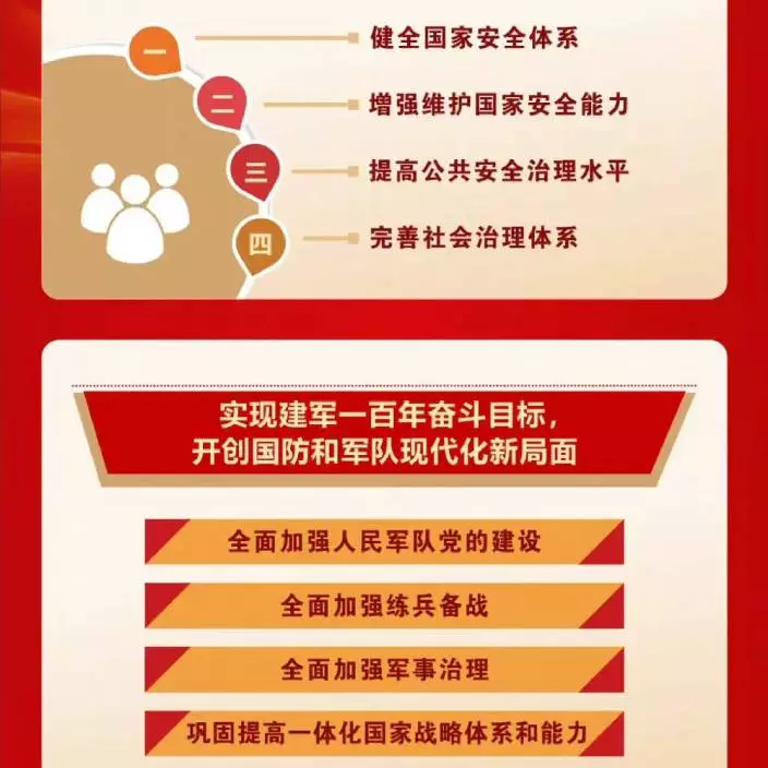建設更高水準的平安中國,以新安全格局保障新發展格局。堅定維護國家政權安全、制度安全、意識形態安全,確保糧食、能源資源、重要產業鏈供應鏈安全,維護我國公民、法人在海外合法權益,築牢國家安全人民防線。