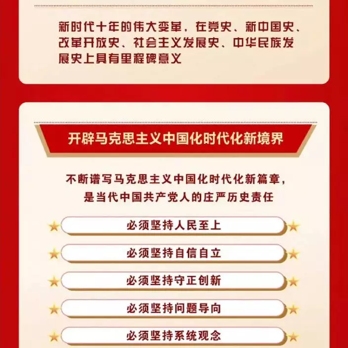 前進道路上,必須牢牢把握以下重大原則:堅持和加強黨的全面領導,堅持中國特色社會主義道路,堅持以人民為中心的發展思想,堅持深化改革開放,堅持發揚鬥爭精神。