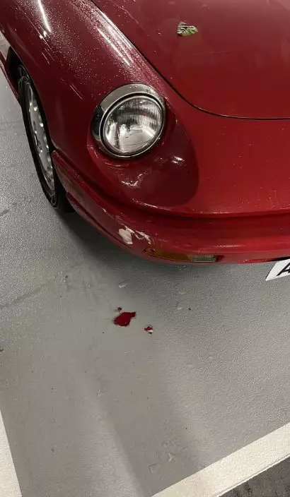 林作駕駛的紅色跑車車頭損毀。資料圖片