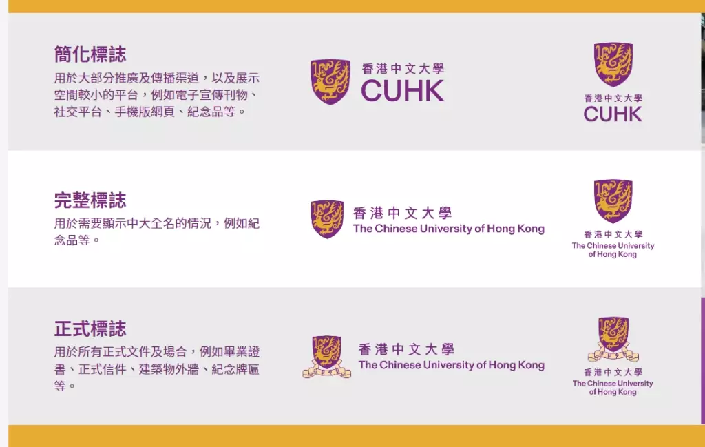 完整標誌:用於需要顯示中大全名的情況,例如紀念品等。