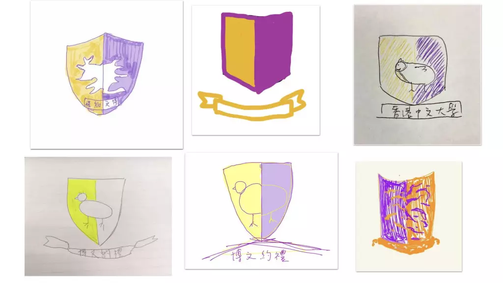 曾任中大新聞與傳播學院客席講師的時事評論員梁啟智亦在網上發文談及更新校徽一事,並指在中大教授數據呈現課並提及可視化時,其中一堂必然是畫中大校徽,並會要求學生憑記憶在紙上畫出自己印象中的校徽,「通常學生都是畫出這樣的東西來:一個盾,分兩邊,一邊紫、一邊金,中間好像有隻鳥」。