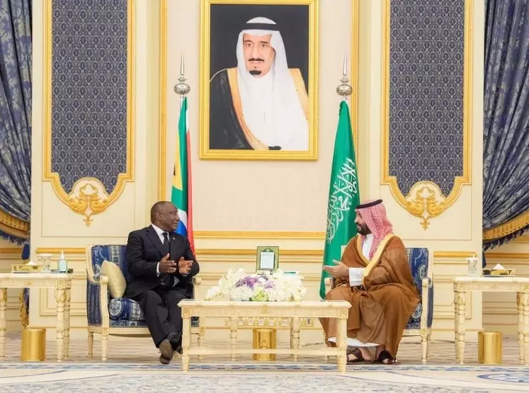 其次是,10月16日,沙特王儲本•薩勒曼在沙特吉達撒拉姆宮接待國事訪問的南非總統馬福薩。馬福薩其後向媒體表示,沙地阿拉伯加入金磚國家,意味著這個集團的國家組成將會有重大變化,預料明年在南非峰會上討論。