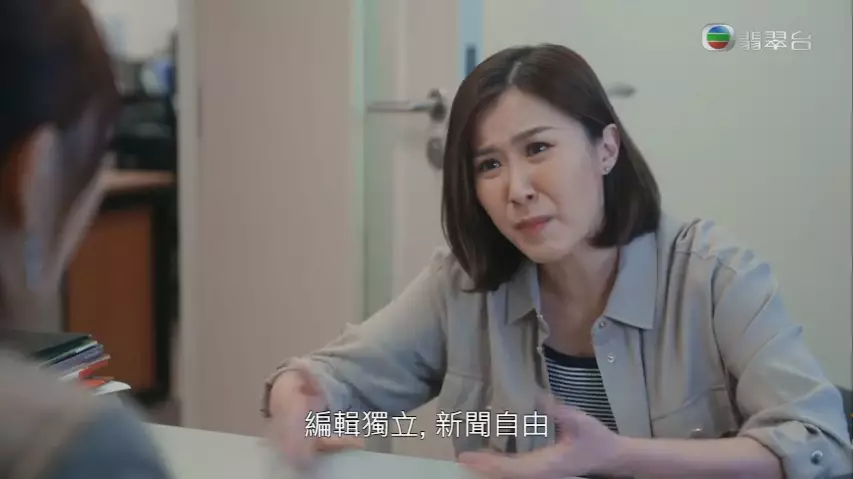 TVB55周年台慶劇《美麗戰場》近日成為全城熱話,10月20日晚一集除了提及蔣家旻被李成昌施暴外,還提到任職娛記的劉佩玥為爆反骨琪蔣家旻黑材料,最後爆料不成反令她的上司「波姐」尹詩沛被迫辭職。