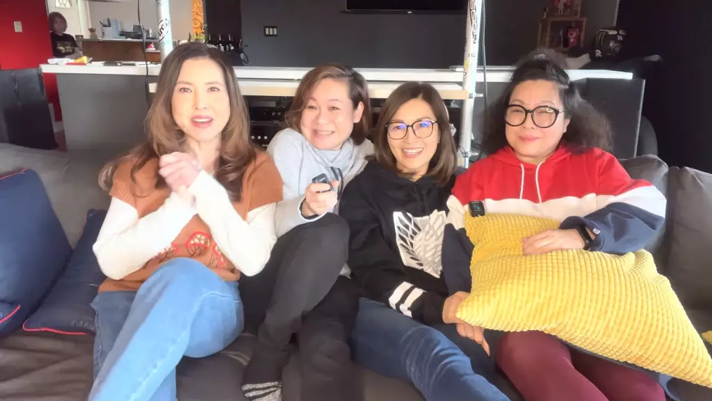 黃璦瑤(右二)最近不時與演藝學院校友李婉華(左一)一同拍YouTube片。