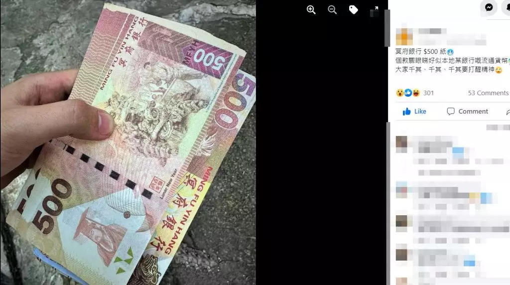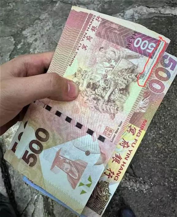 有網民在「超市關注組」FB分享最近買到的一批仿真度極高的冥鈔,該批冥鈔仿製港幣五百元,除了在鈔票上面印有「冥府銀行」外,「個款驟眼睇好似本地某銀行嘅流通貨幣,大家千其(祈)、千其(祈)、千其(祈)要打醒精神。」