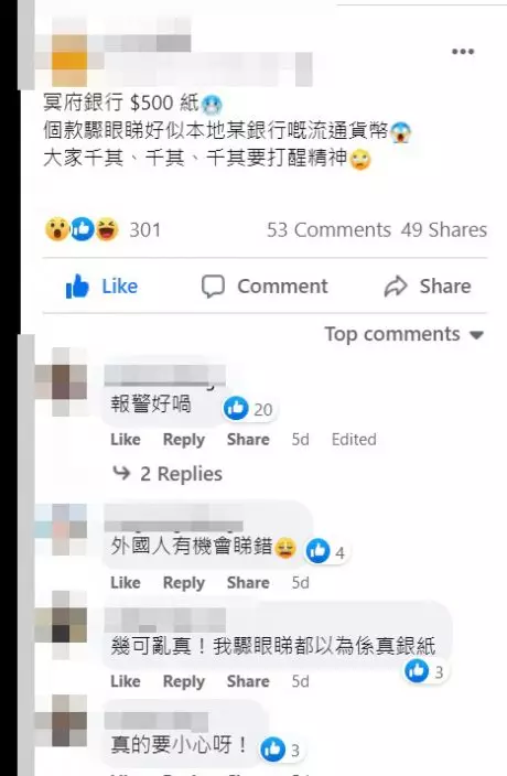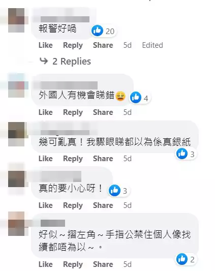 由於仿真度極高,事件惹來網民熱議:「Wow,真係好似。」「如果夾係中間冇留意就弊。」「幾可亂真!我驟眼睇都以為係真銀紙。」「報警好喎。」「係啊,點可以做的甘逼真。」「外國人有機會睇錯。」