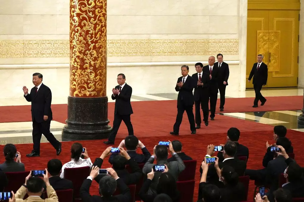 二十大主席團在北京人民大會堂舉行第三次會議。王滬寧(左二)等出席。 新華社