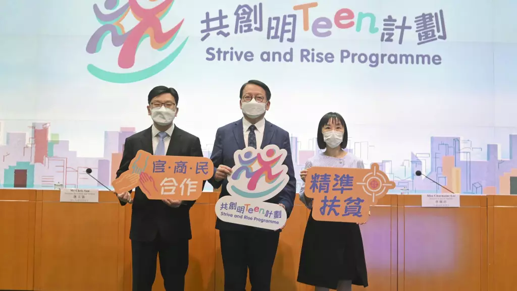「共創明『Teen』計畫」由政務司司長領導的跨部門行動小組設立,旨在通過政、商、民三方協作,扶持來自弱勢社群家庭的中一至中三學生,推動他們開闊眼界,加強自信,建立正向人生觀,為自己未來定下目標,力爭上游。計劃涵蓋3大元素,分別為師友配對、個人發展規劃,以及財政支援,第一期為期1年。